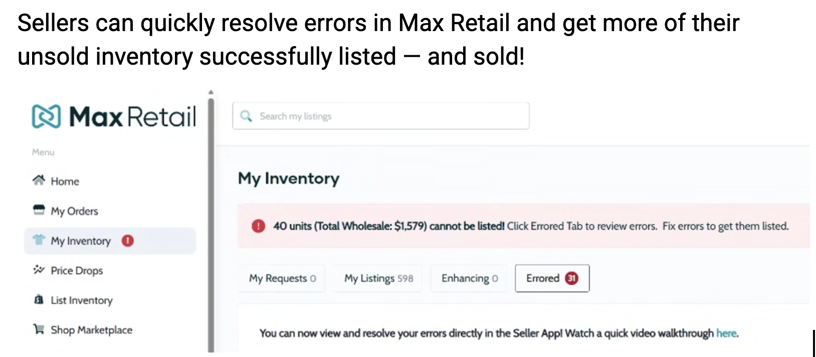 Sellers can quickly resolve errors in Max Retail and get more of their unsold inventory successfully listed — and sold!